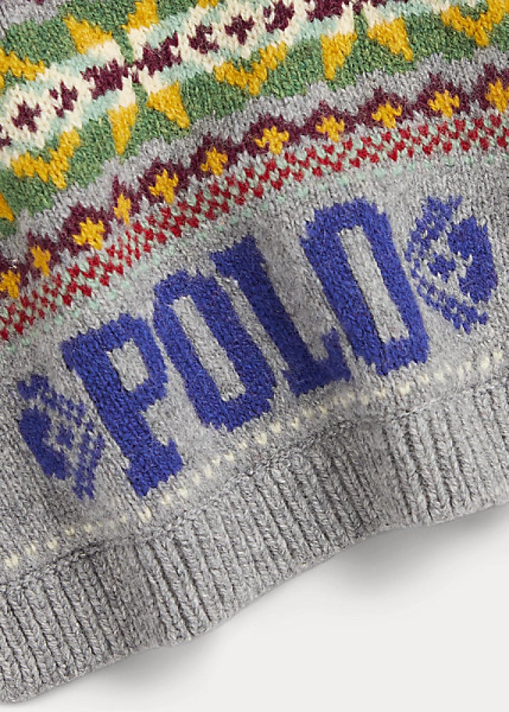 This wool-blend scarf features cosy fleece lining, the season's Fair Isle motif and an intarsia-knit logo at each end.
